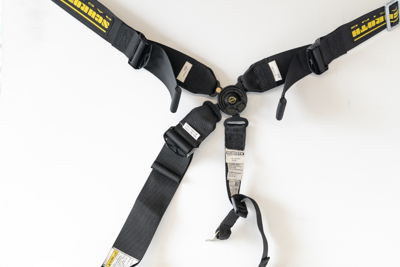 5 Point seat belt, but one belt missing.